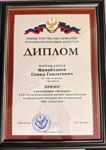 29 ноября состоялась 31 Республиканская научно-практическая конференция молодых исследователей «Шаг в будущее». Учащиеся нашего Образовательного центра – Мамайханов Гамид (11 класс) и Булатова Хадиджа (9 класс) заняли почетные 2-е призовые места на этом форуме талантов.