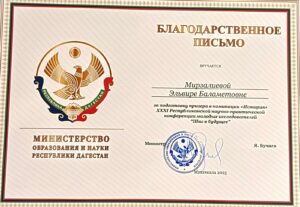 Администрация и коллектив ОУ «ОЦ «Развитие» поздравляет ребят и их наставников – Мирзалиеву Эльвиру Баламетовну и Дарбишову Марьям Ахмедовну с этой блестящей победой.