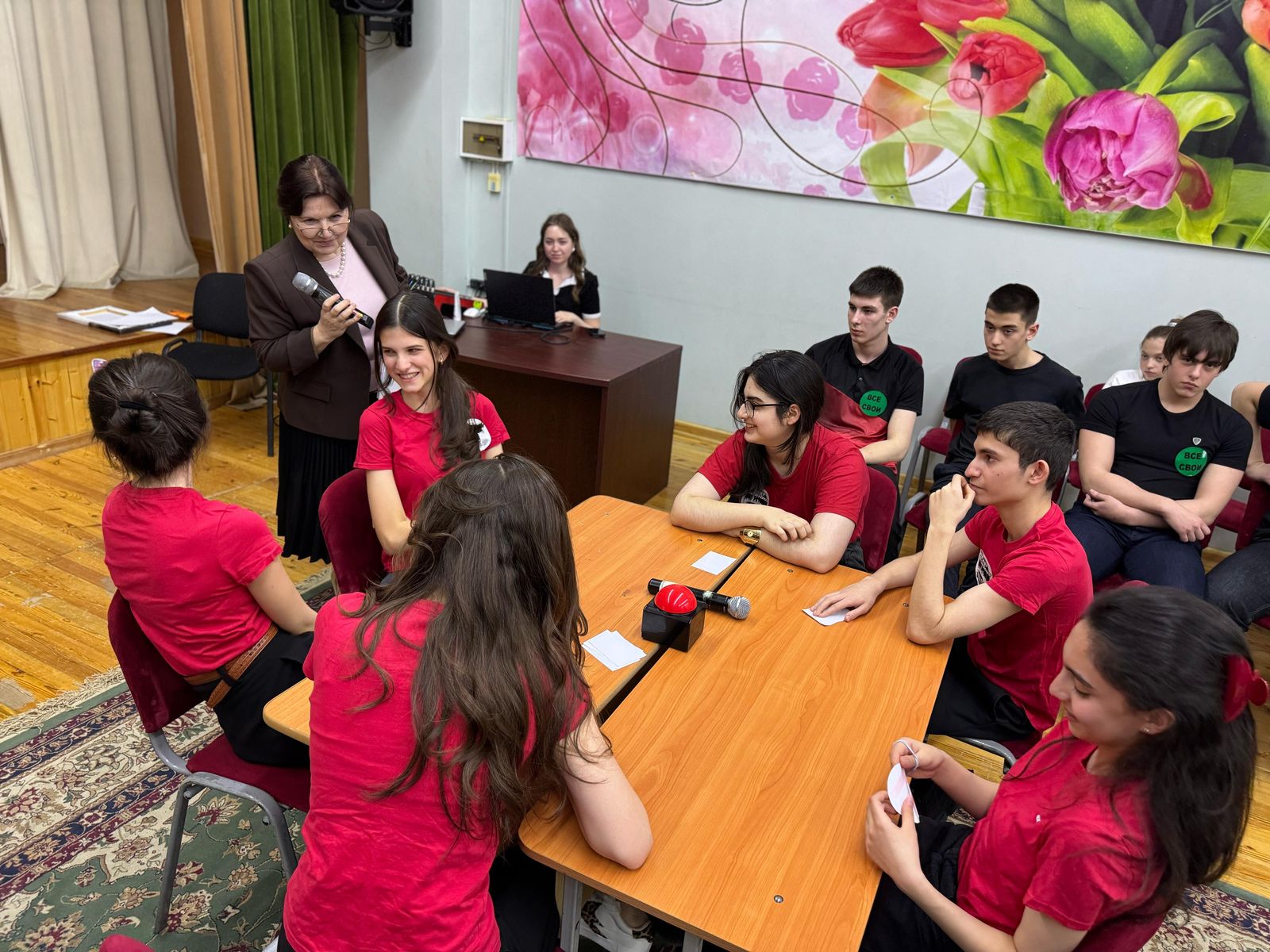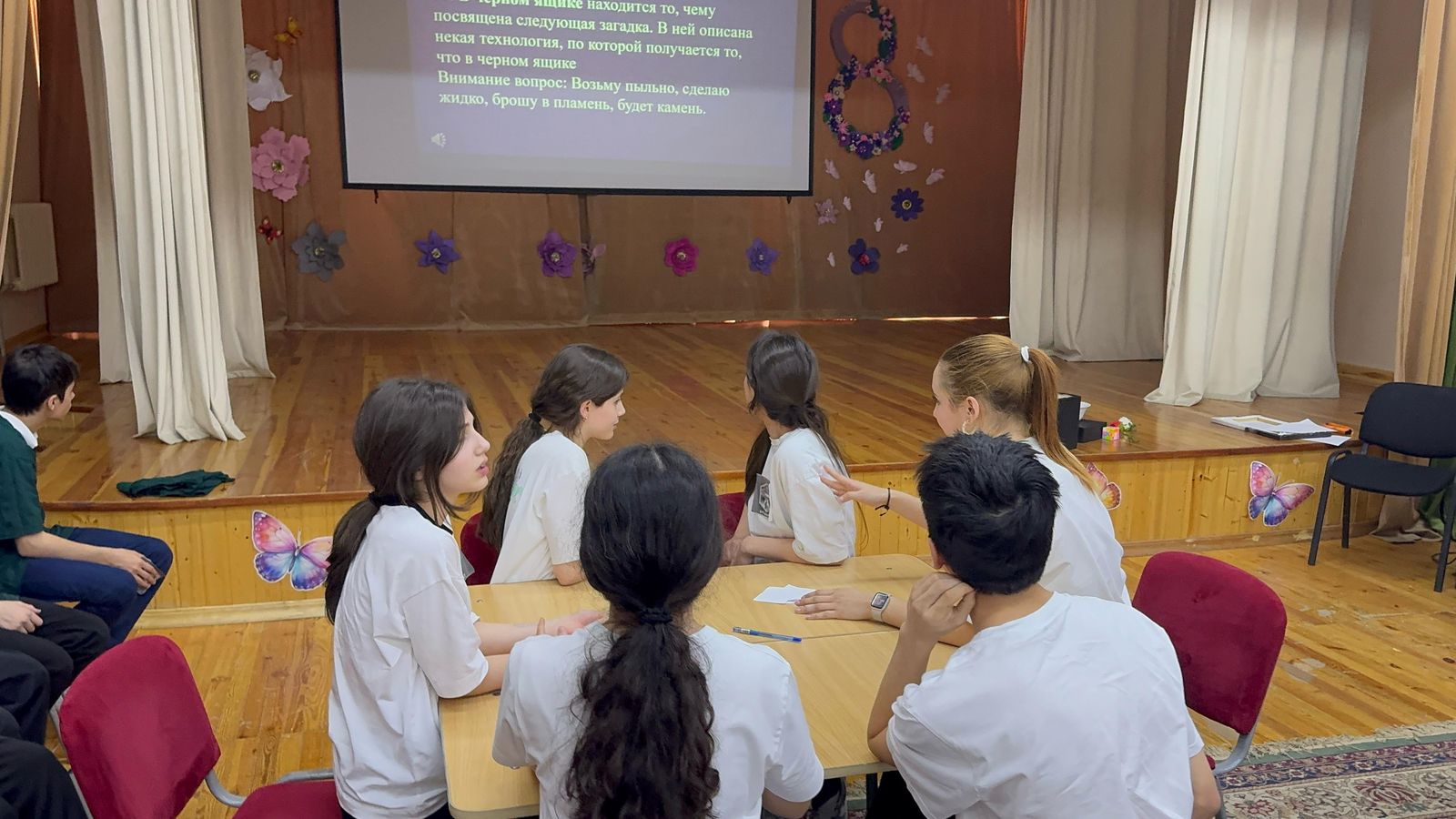 Интеллектуальная игра «Брейн-ринг» прошла в нашей школе среди учащихся 8-11 классов. В ходе состязания учащиеся разделились на 6 равных команд. Ребята отвечали на заданные вопросы, которые подготовила Эльвира Баламетовна — учитель истории и обществознания.