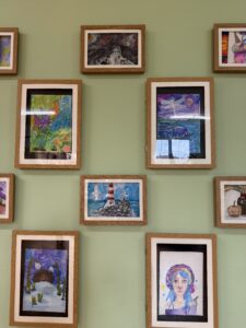 На выставке представлено множество работ, выполненных в самых разных техниках: яркие акварельные и гуашевые картины, а также аппликации. Тематика работ разнообразна. Здесь можно увидеть и пейзажи, запечатлевшие красоту природы, портреты, передающие характер изображенных людей, натюрморты и многое другое. Каждая картина — это маленькая история, которую автор рассказывает зрителю.