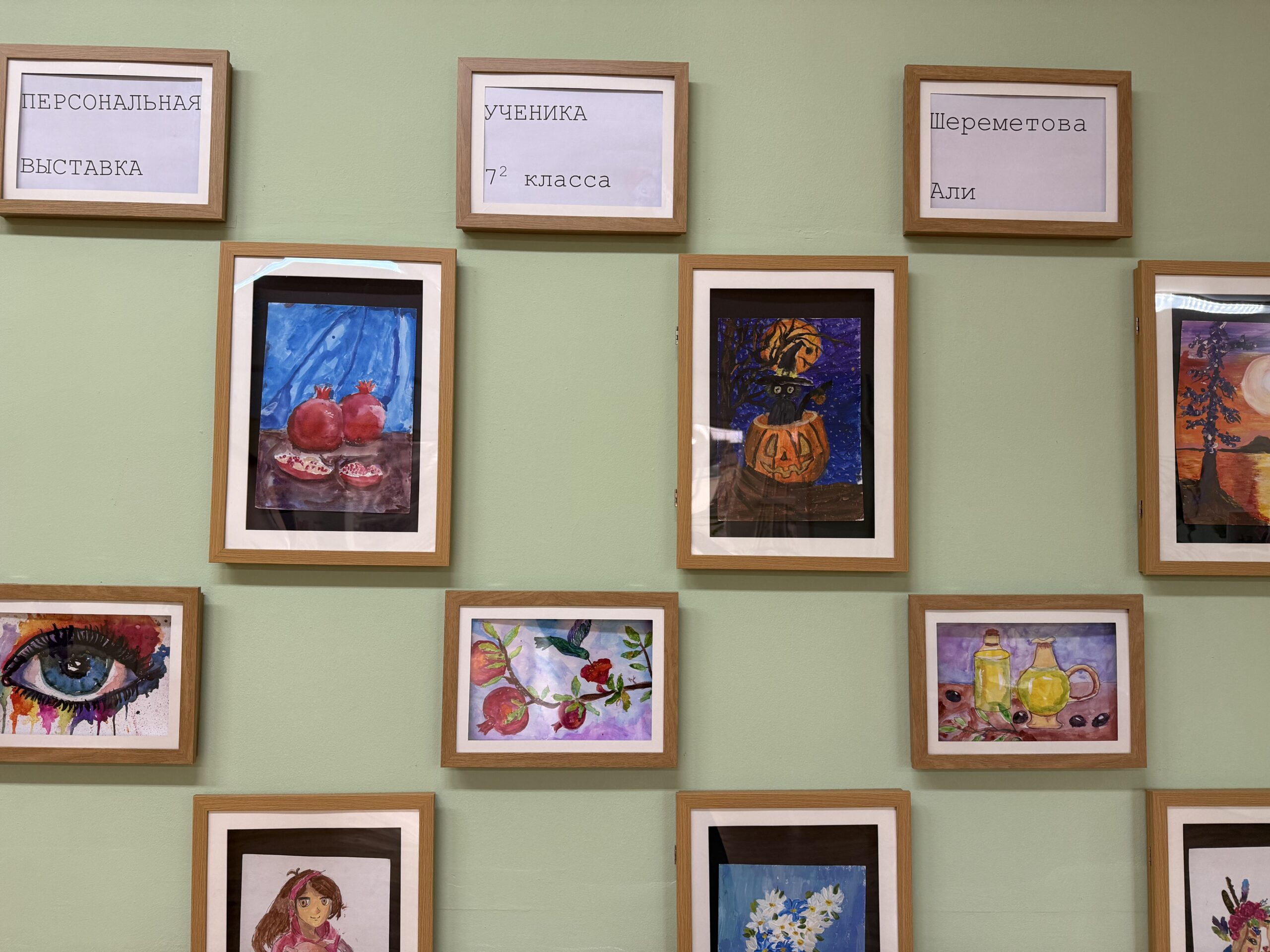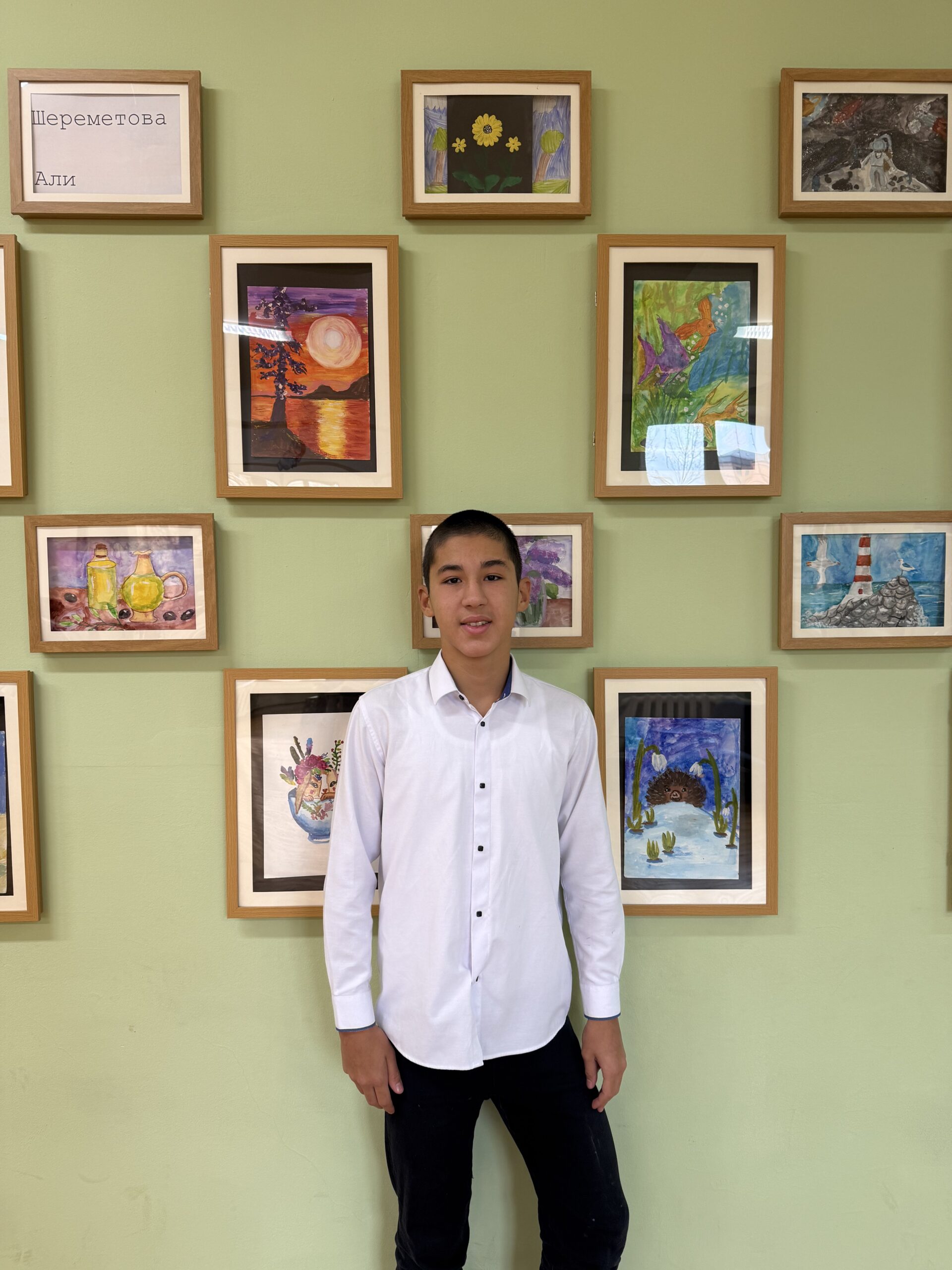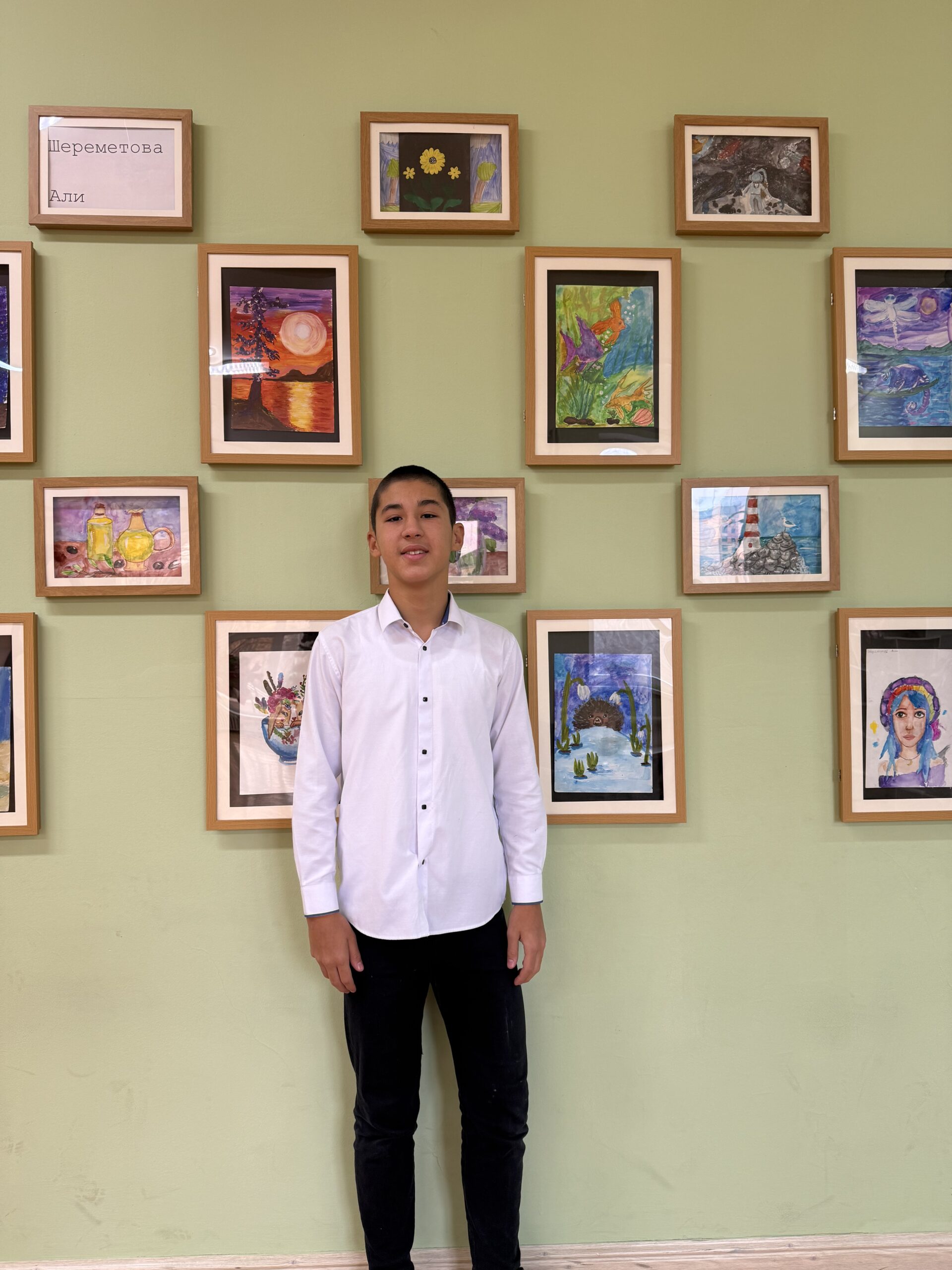 В нашей школе произошло что-то по-настоящему вдохновляющее. Вместо привычных стендов с объявлениями или расписанием, один из коридоров превратился в настоящую галерею. Мы стали свидетелями открытия персональной выставки рисунков ученика 7 класса — Шереметова Али.