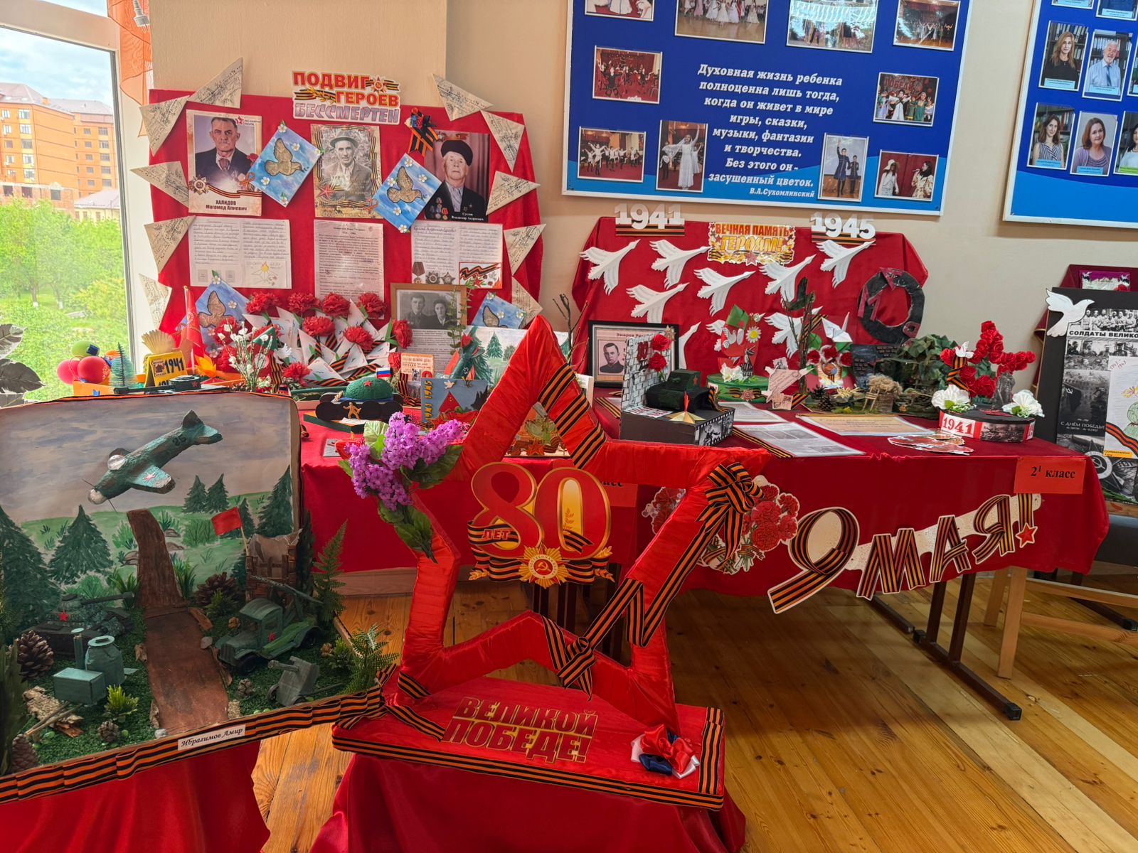 Каждый класс совместно с педагогами подготовил и выставил проекты, где были представлены поделки на тему Великой Отечественной войны, а также информация о тех, кто сражался за нашу Родину.