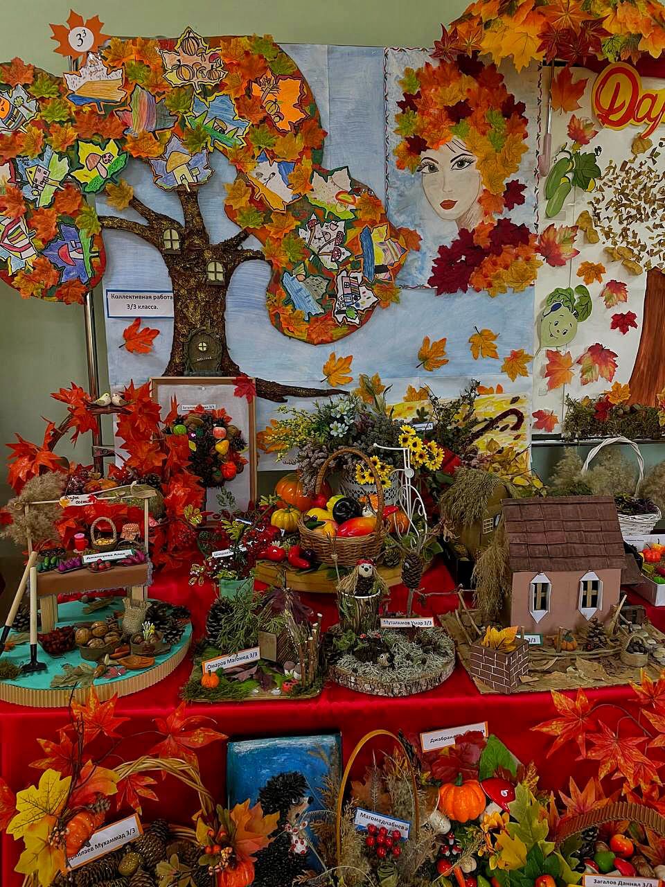 Поэтому в нашей школе проходит традиционная выставка-конкурс «Краски осени», на которой представлены детские работы из природного материала.